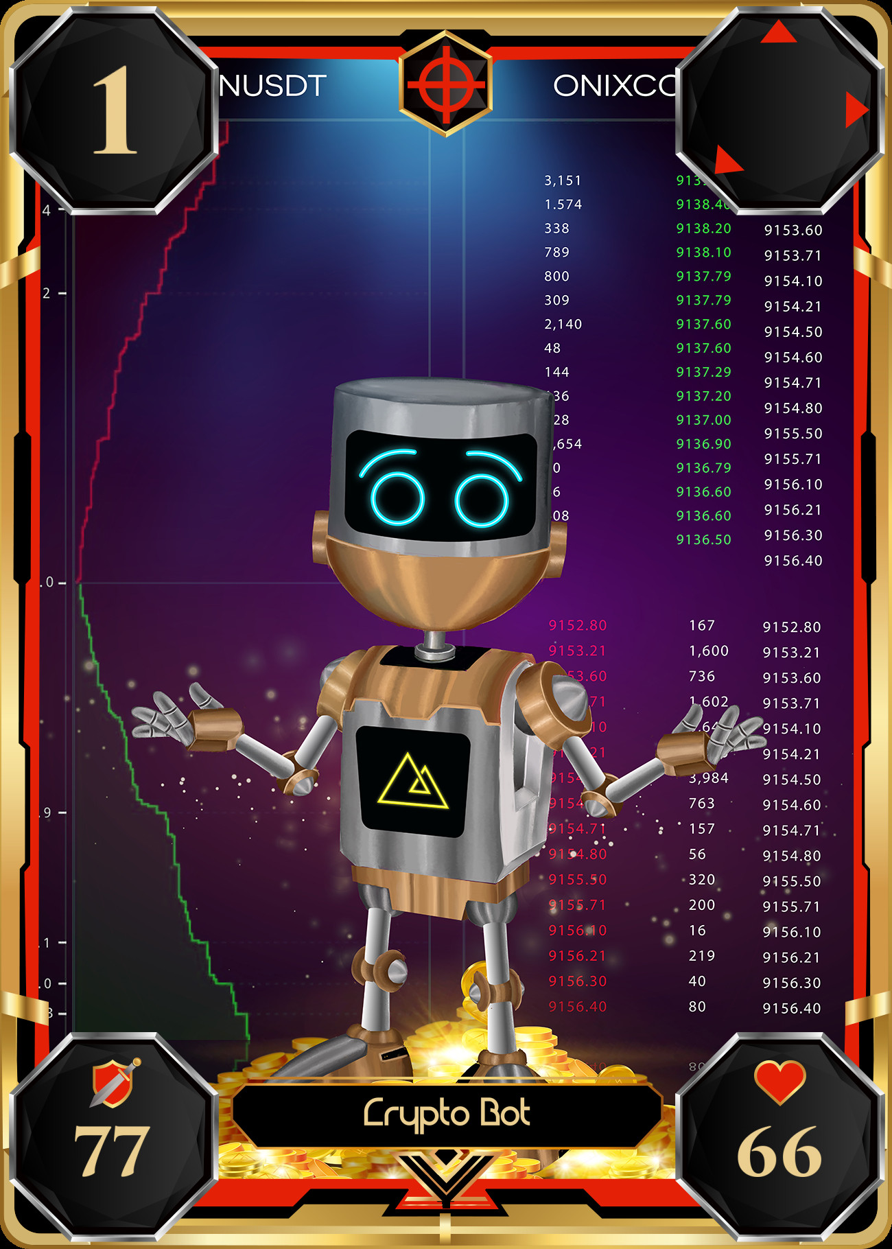 Crypto Bot is a trading card from the Army of Crypto game that belongs to the AOCSOLDS collection minted on the Onixcoin Blockchain.