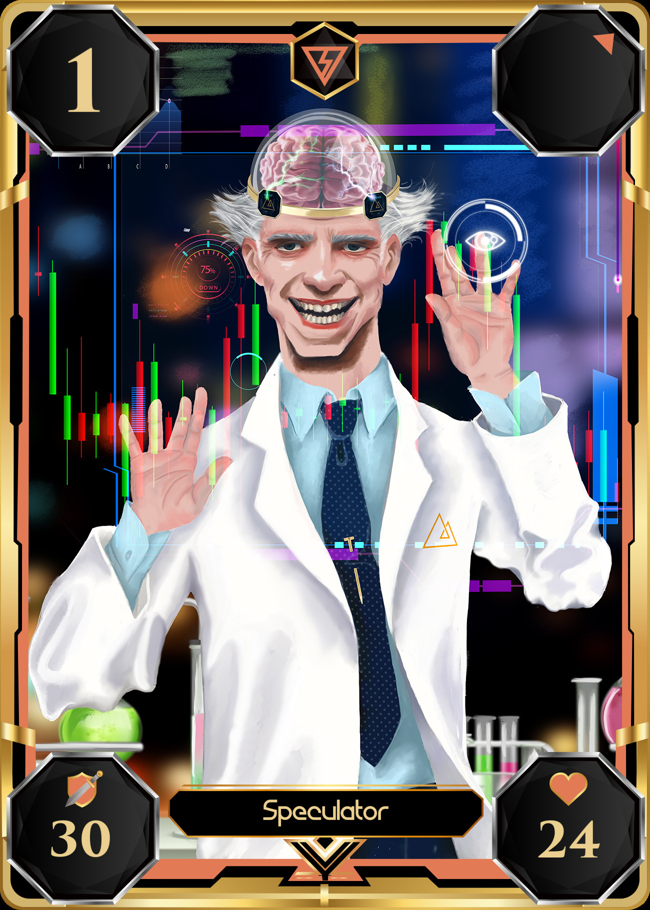 Eyes firmly on profits and profits alone, the Speculator will resort to any means necessary to achieve his goals. He is known for his financial transactions that have substantial risk of losing all value, but with the expectation of exponential rewards. His lightning fingers manipulate the market to exploit small changes in search for his desired profits.